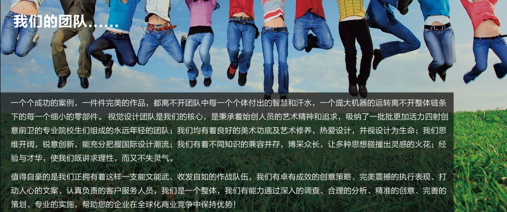 “飛凡設(shè)計(jì)”是我們沿用13年的公司品牌名稱。公司始創(chuàng)于2001年,由一群年輕無畏的美術(shù)院校畢業(yè)生共同發(fā)起組建;本著專業(yè)的美術(shù)基礎(chǔ)及無限的激情,我 們致力于將專業(yè)的美術(shù)視角融入現(xiàn)代商業(yè)設(shè)計(jì),用商業(yè)運(yùn)作培養(yǎng)藝術(shù)精神,走在了行業(yè)的前沿。 今天,我們依然在不斷進(jìn)取,在尋求自我的突破,在不斷的探尋與實(shí)踐過程中我們也與我們堅(jiān)實(shí)的合作伙伴們推動(dòng)了整個(gè)行業(yè)審美與技術(shù)的進(jìn)步。